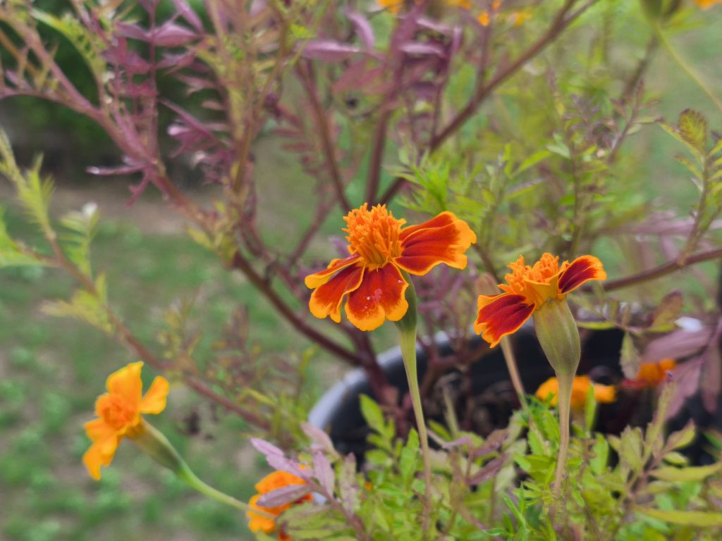 Mittlerweile sehen meine Studentenblumen ganz anders aus, als damals als ich sie gekl..auft habe. Ich bin mir ziemlich sicher, dass sie sich in diesen vielen Jahren einfach zurückentwickelt haben. Denn die vom städtischen Beet hatten gigantische gelbe Köpfe und waren alle vollständig gefüllt. Ihre Nachkommen hingegen zeigen teils sogar einzelne Blütenblätterreihen und sind jetzt einfach orange.
