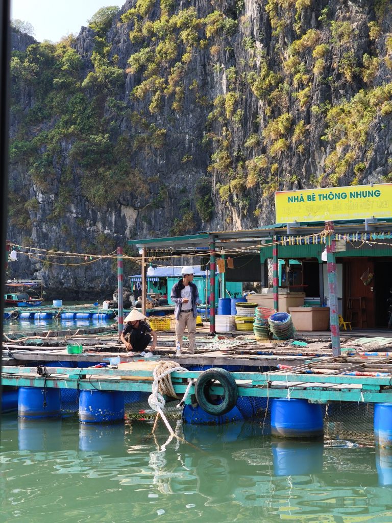 In der Bucht finden wir mehrere schwimmende Dörfer, darunter Cửa Vạn oder Vung Viêng. Die Menschen hier leben traditionell vom Fischfang und der Austernzucht, viele Familien bewohnen seit Generationen Hausboote. Der Zugang zu Bildung, Strom und Trinkwasser war lange Zeit prekär. Inzwischen werden jedoch mobile Schulen, Solaranlagen und staatliche Programme zur nachhaltigen Entwicklung eingesetzt. Dennoch droht vielen Dörfern die Umsiedlung, teils aus Umwelt-, teils aus Tourismusgründen.